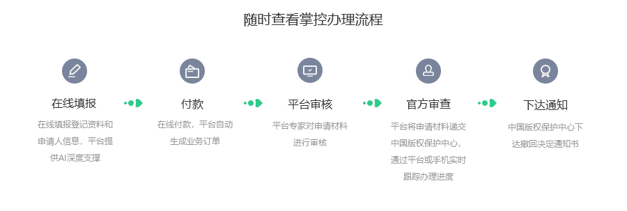 申请人在收到受理通知书后至登记申请批准之前,可以随时向中国版权保护中心提交撤回申请(撤回申请的范围是作品著作权登记申请、合同登记申请及变更/补充登记申请)。